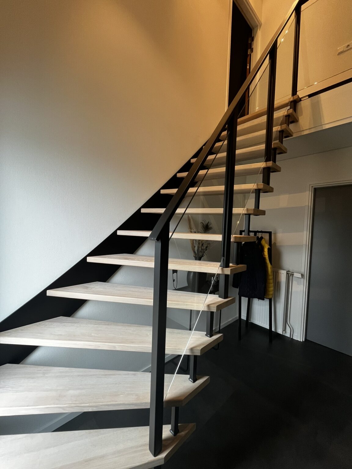 In Uithuizen hebben we een unieke trap gerealiseerd: een trap met gekoppelde houten treden die vakmanschap en oog voor detail uitstraalt. Omdat de trap voor een raam langs moest lopen, hebben we de constructie hier zorgvuldig op afgestemd. Zo loopt de trap elegant voor het raam langs, zonder het licht te blokkeren.