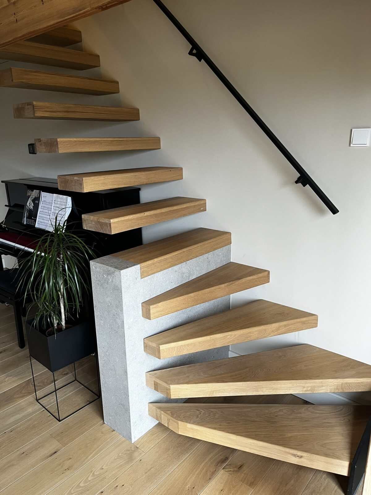 In een volledig houten woning in Lemmer hebben we een zwevende trap geplaatst met massief eiken treden. De trap is een blikvanger: de bewoners krijgen er regelmatig complimenten over van bezoek.